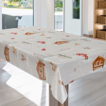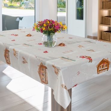 Laro Wachstuchtischdecke Alpen Chalet Grau PVC Eckig