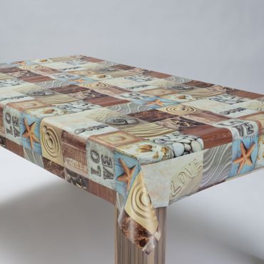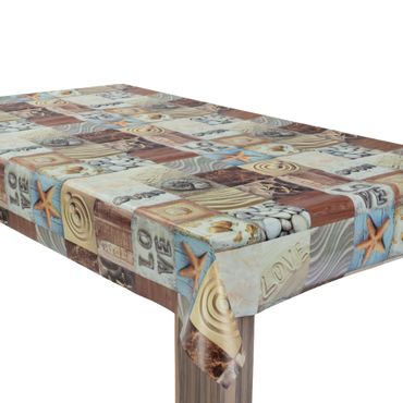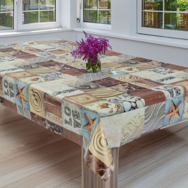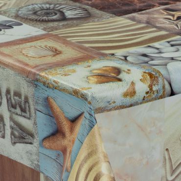 Laro Wachstuchtischdecke Beach Patchwork Natur PVC Eckig