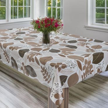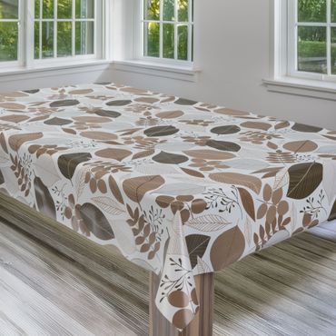 Laro Wachstuchtischdecke Blätter Grafik Beige PVC Eckig