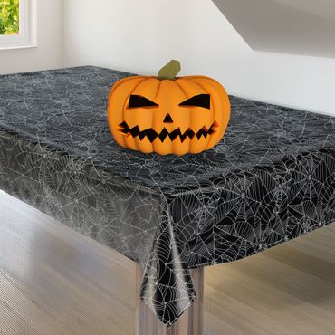 Laro Wachstuchtischdecke Halloween Spinnennetz Schwarz PVC Eckig