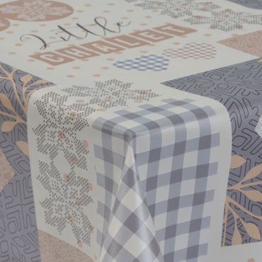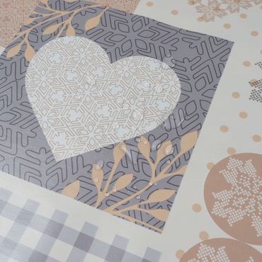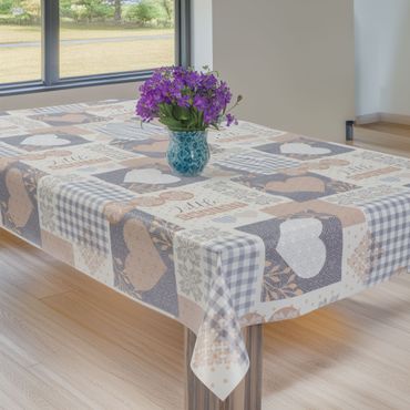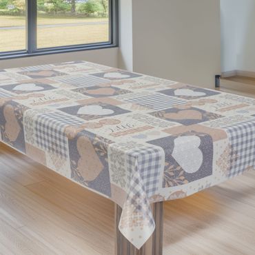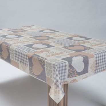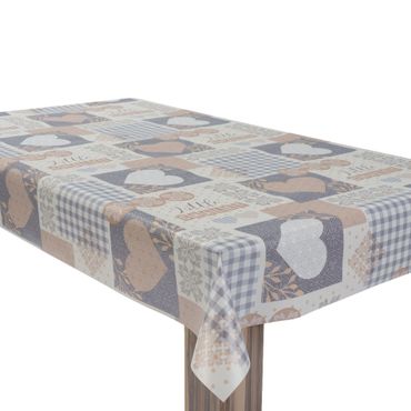 Laro Wachstuchtischdecke Herzen Landhaus Beige-Grau PVC Eckig