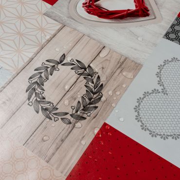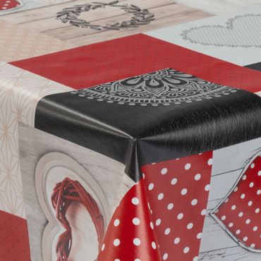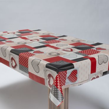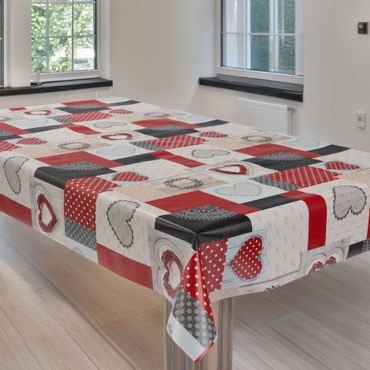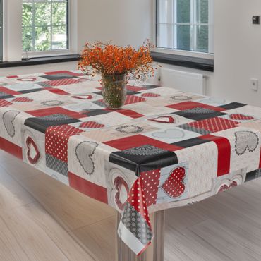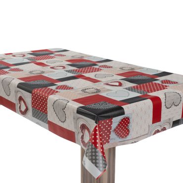Laro Wachstuchtischdecke Herzen Landhaus Rot-Grau PVC Eckig