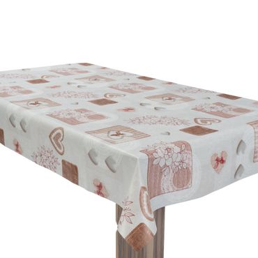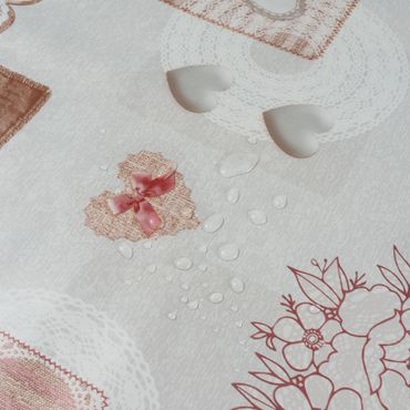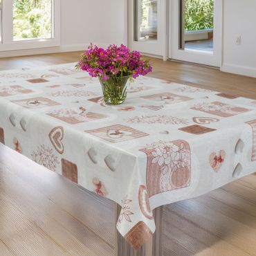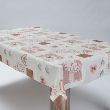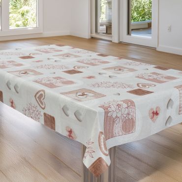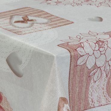 Laro Wachstuchtischdecke Herzen Romantik Beige PVC Eckig