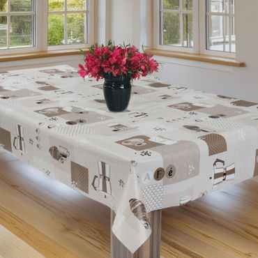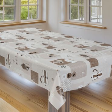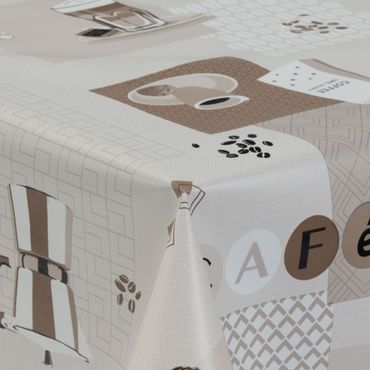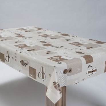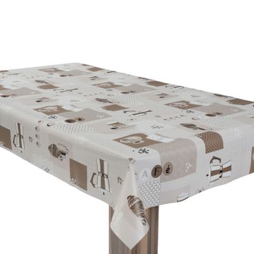 Laro Wachstuchtischdecke Kaffee Print Beige PVC Eckig
