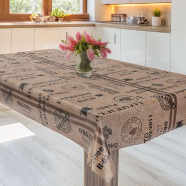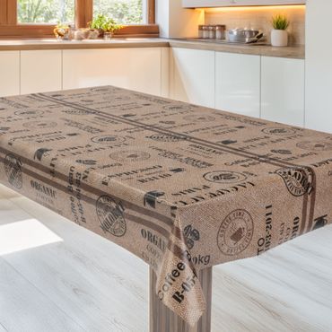 Laro Wachstuchtischdecke Kaffeerösterei Braun PVC Eckig