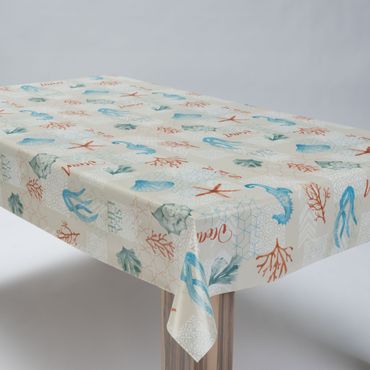 Laro Wachstuchtischdecke Korallenriff Beige PVC Eckig