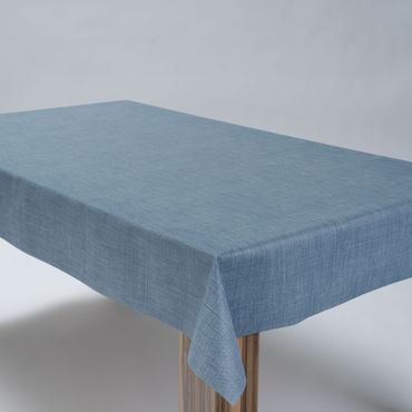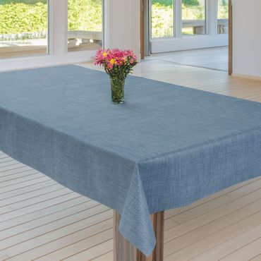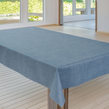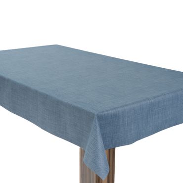 Laro Wachstuchtischdecke Leinenstruktur Blau PVC Eckig