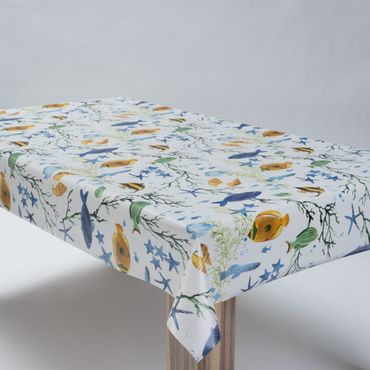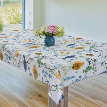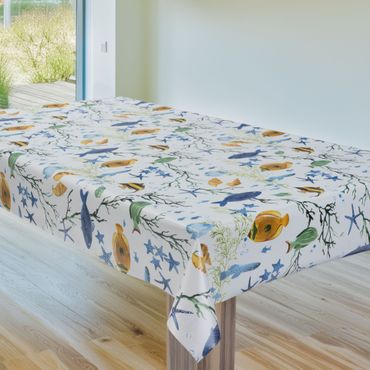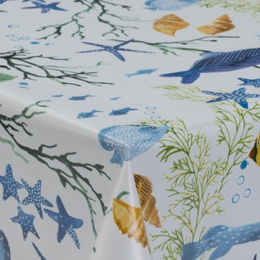 Laro Wachstuchtischdecke Meereswelt Blau PVC Eckig