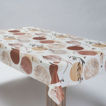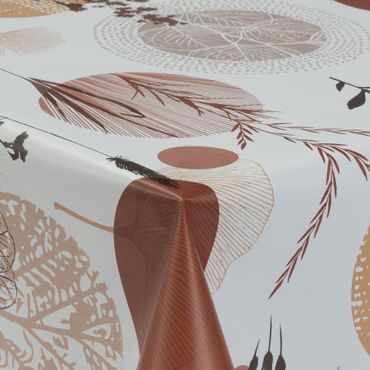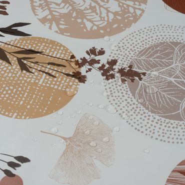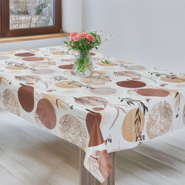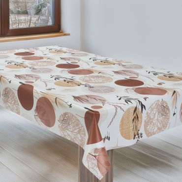 Laro Wachstuchtischdecke Natur Blätter Kreise PVC Eckig