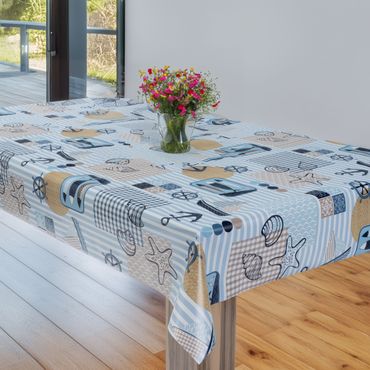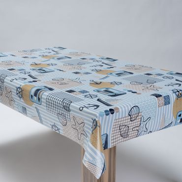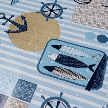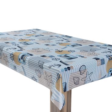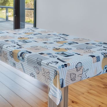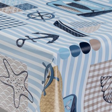 Laro Wachstuchtischdecke Nautik Muster Blau PVC Eckig