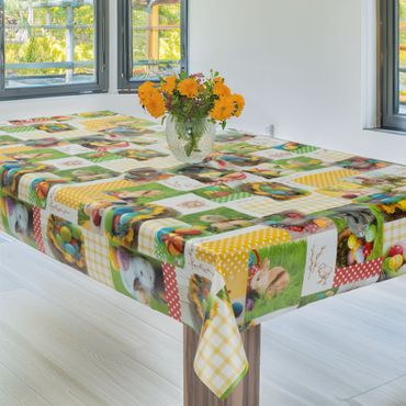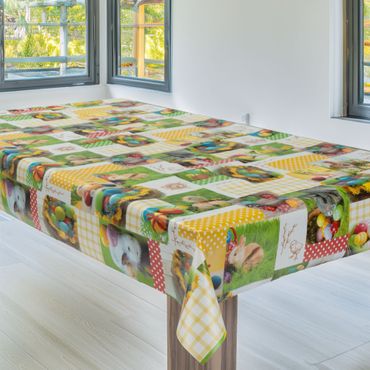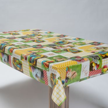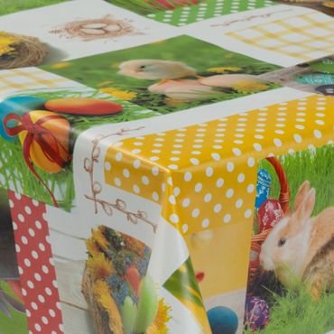 Laro Wachstuchtischdecke Osterwiese Patchwork Bunt PVC Eckig