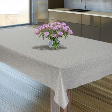 Laro Wachstuchtischdecke Polka Dots Beige PVC Eckig