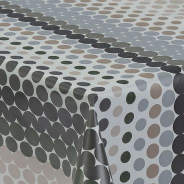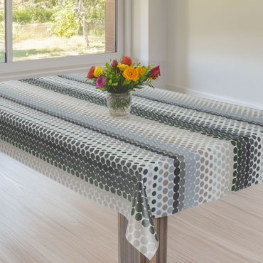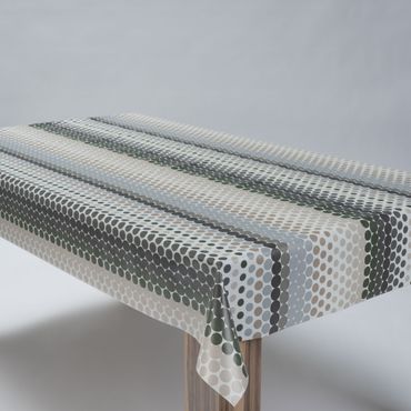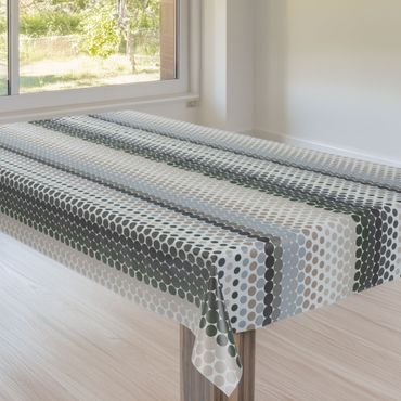 Laro Wachstuchtischdecke Punkte Linienmuster Beige-Grün-Grau PVC Eckig