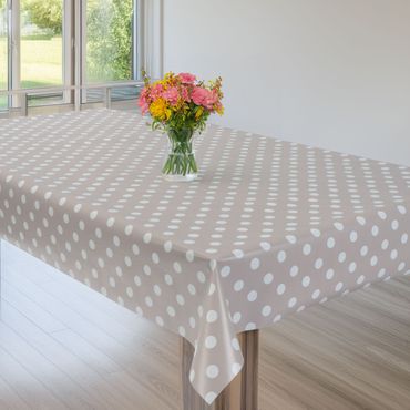 Laro Wachstuchtischdecke Punkte Taupe PVC Eckig