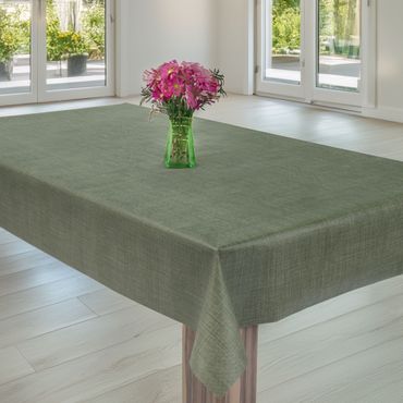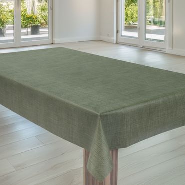 Laro Wachstuchtischdecke Uni Leinen Olivgrün PVC Eckig