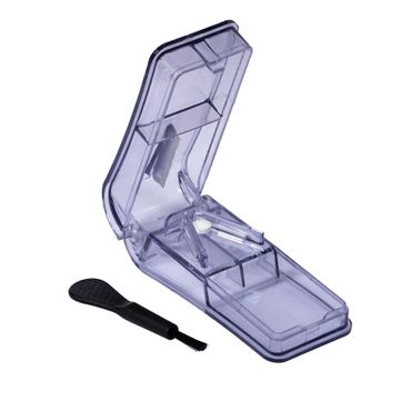 Das transparente Gehäuse bietet optimale Sicht auf die Tablette und erleichtert das exakte Positionieren. Die stabile Halterung fixiert die Pille sicher, während das geschlossene Klingensystem die Finger zuverlässig schützt – ideal für den täglichen Einsatz.