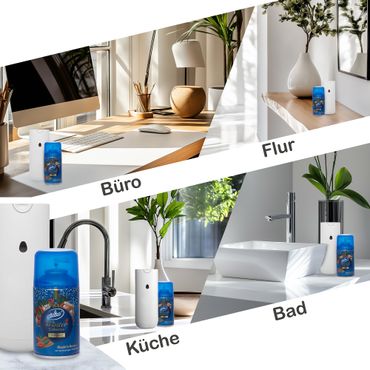 Kompatibel mit Air Wick Freshmatic Max & Glade Duftspray-Geräten – Der Laro Premium Airline Nachfüller ist kompatibel mit automatischen Duftspray-Systemen wie Air Wick Freshmatic Max und Glade Duftspray-Geräten. Er lässt sich mühelos in die entsprechenden Geräte einsetzen und sorgt für eine automatische Duftverteilung in regelmäßigen Abständen. Preisvorteil bei größeren Bestellmengen – Je mehr Sie kaufen, desto günstiger wird der Preis pro Einheit! Dank attraktiver Mengenrabatte lohnt es sich, gleich mehrere Nachfüller zu bestellen, um dauerhaft für eine angenehme Duftatmosphäre zu sorgen und gleichzeitig Geld zu sparen. Langanhaltender und intensiver Duft – bis zu 60 Tage Frische – Dieser Nachfüller versprüht einen gleichmäßigen und langanhaltenden Duft, der Ihr Zuhause oder Büro kontinuierlich mit einer angenehmen Frische erfüllt. Dank der speziellen Formel hält eine Kartusche bis zu 60 Tage, je nach Intensitätseinstellung des Geräts. So genießen Sie über Wochen hinweg eine angenehme Duftatmosphäre. Einfache Anwendung & schnelle Installation – Der Laro Premium Airline Nachfüller kann ohne großen Aufwand in das kompatible Duftspray-Gerät eingesetzt werden. Einfach den alten Nachfüller entnehmen, die neue Kartusche einsetzen und das Gerät wieder aktivieren – schon verbreitet sich der Duft automatisch. Hochwertige Duftkomposition für ein einladendes Zuhause – Die Duftformel wurde mit hochwertigen Inhaltsstoffen entwickelt, um ein angenehmes, frisches und einladendes Raumklima zu schaffen. Ideal für Wohnräume, Büros, Badezimmer oder andere Bereiche, in denen Sie eine angenehme Duftnote genießen möchten.